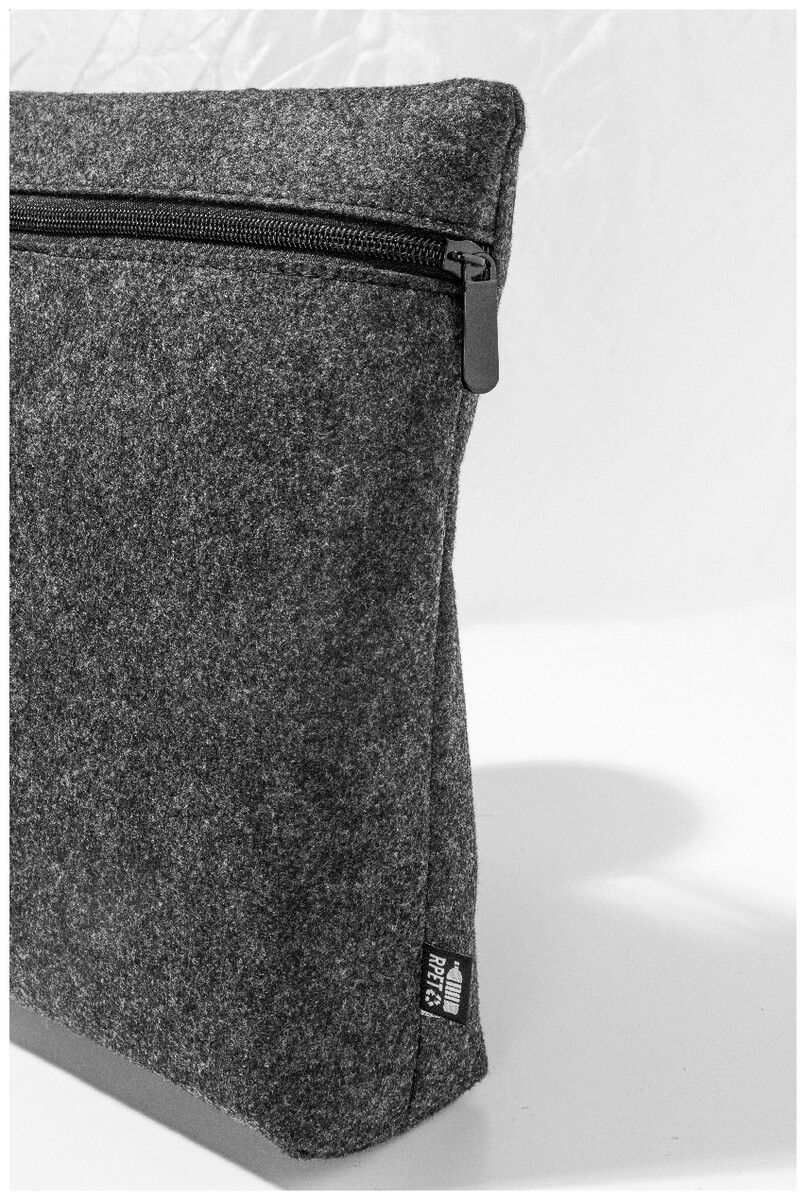 Plstěná taška na dokumenty nebo notebook z RPET s hlavní přihrádkou na zip a vnitřní kapsou na zip. Vhodná pro notebooky do 15". S výrazným štítkem RPET.