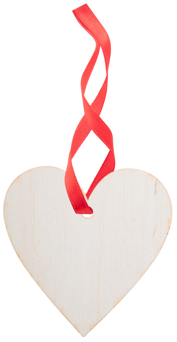 Vánoční ozdoba z březové překližky, dodáváno s oddělenou červenou stužkou.