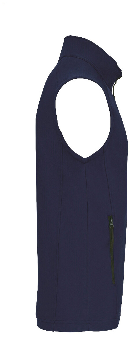 Třívrstvá, prodyšná, větru a voděodolná softshellová vesta na tělo se zipem a náprsními a bočními kapsami na zip. S prodyšnou střední vrstvou a vnitřní vrstvou z micro polar fleecu. Materiál: 95 % polyester a 5 % elastan, 300 g/m2. Výrobek značky Kariban.