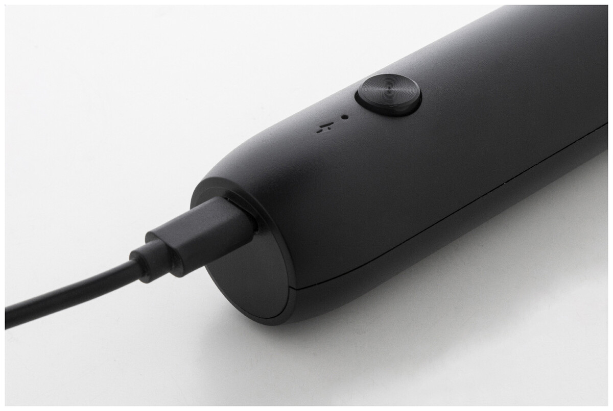 Elektrický ruční napěňovač mléka v pouzdře z recyklovaného ABS s matným povrchem. S vestavěnou dobíjecí baterií přes USB (500 mAh). Včetně nabíjecího kabelu USB-C.