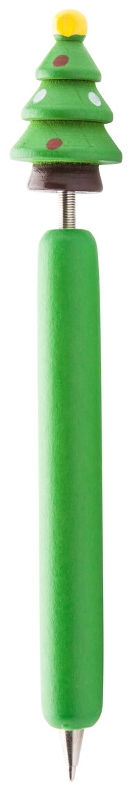 Dřevěné, vtipné kuličkové pero s vánoční figurkou na vršku. S modrou náplní.