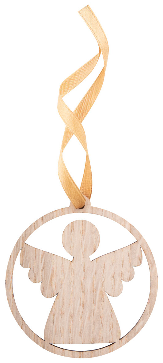 Vánoční ozdoba z dubové dýhy, dodáváno s oddělenou zlatou stužkou.