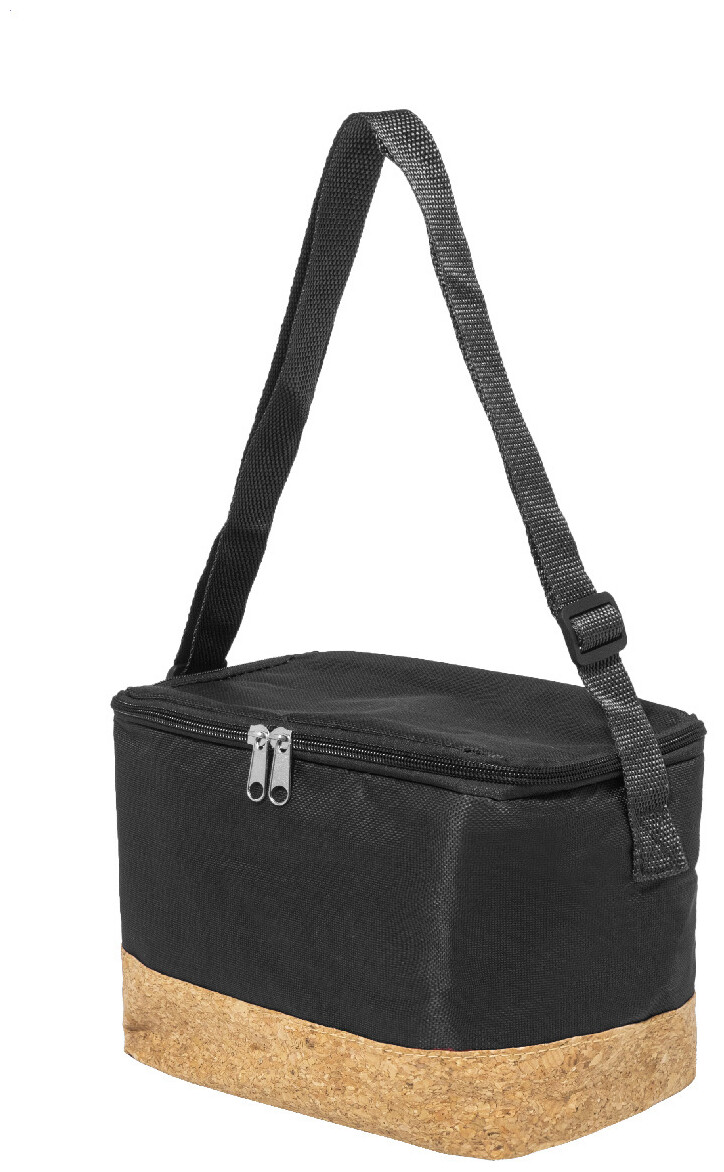 Chladicí taška na zip z 600D RPET polyesteru s přírodní korkovou základnou, PEVA polstrováním a nastavitelným ramenním popruhem. S výrazným štítkem RPET.