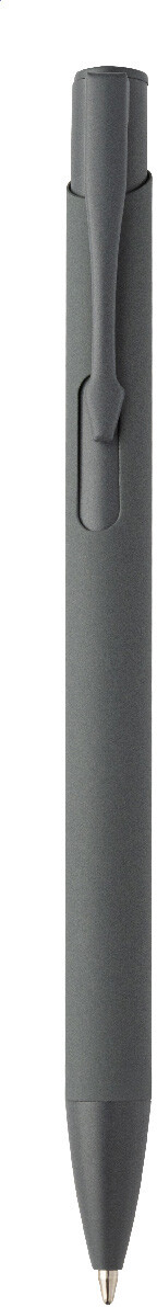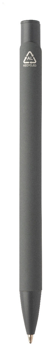 Kuličkové pero z recyklovaného hliníku s pogumovaným tělem a barevnými lesklými kovovými díly. Se speciálním povrchem pro zrcadlové gravírování, které odpovídá kovovým částem. S modrou náplní.