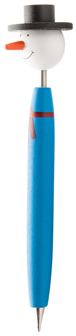 Dřevěné, vtipné kuličkové pero s vánoční figurkou na vršku. S modrou náplní.