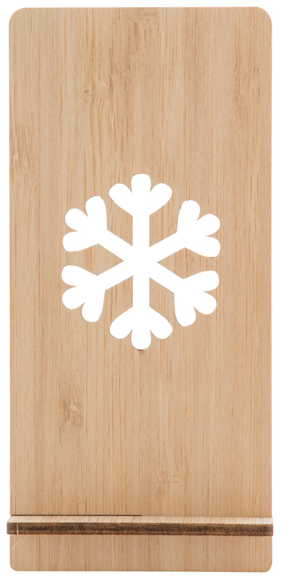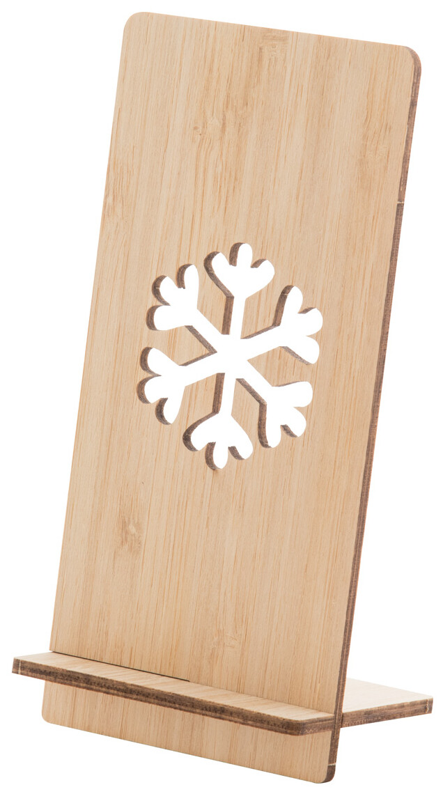 Stojánek na mobil z bambusové překližky s vyřízlým vánočním motivem. Dodáváno rozložené.