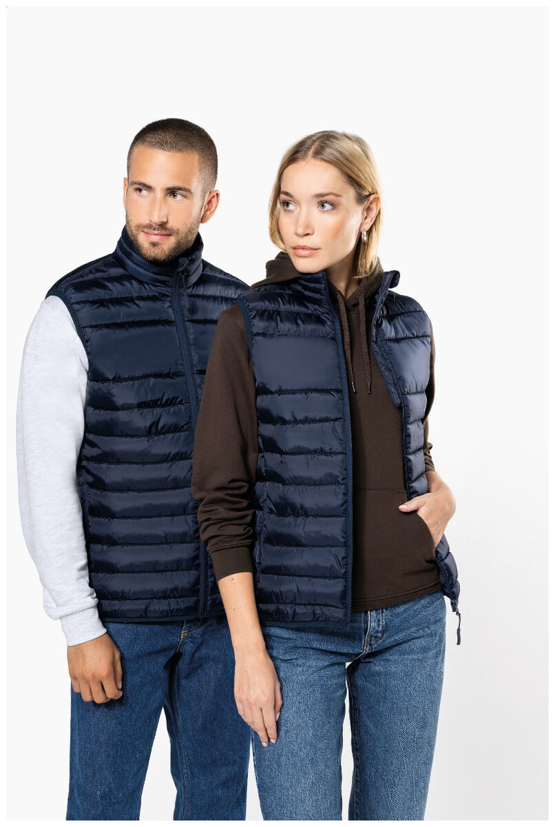 Prošívaná vesta zateplená na zip a s polstrováním, s bočními kapsami na zip.Vnější strana: 100% polyester 290T. Výplň: 100% polyester: Materiál: 100% polyester. Materiál: 60 g/m2. Výrobek značky Kariban.