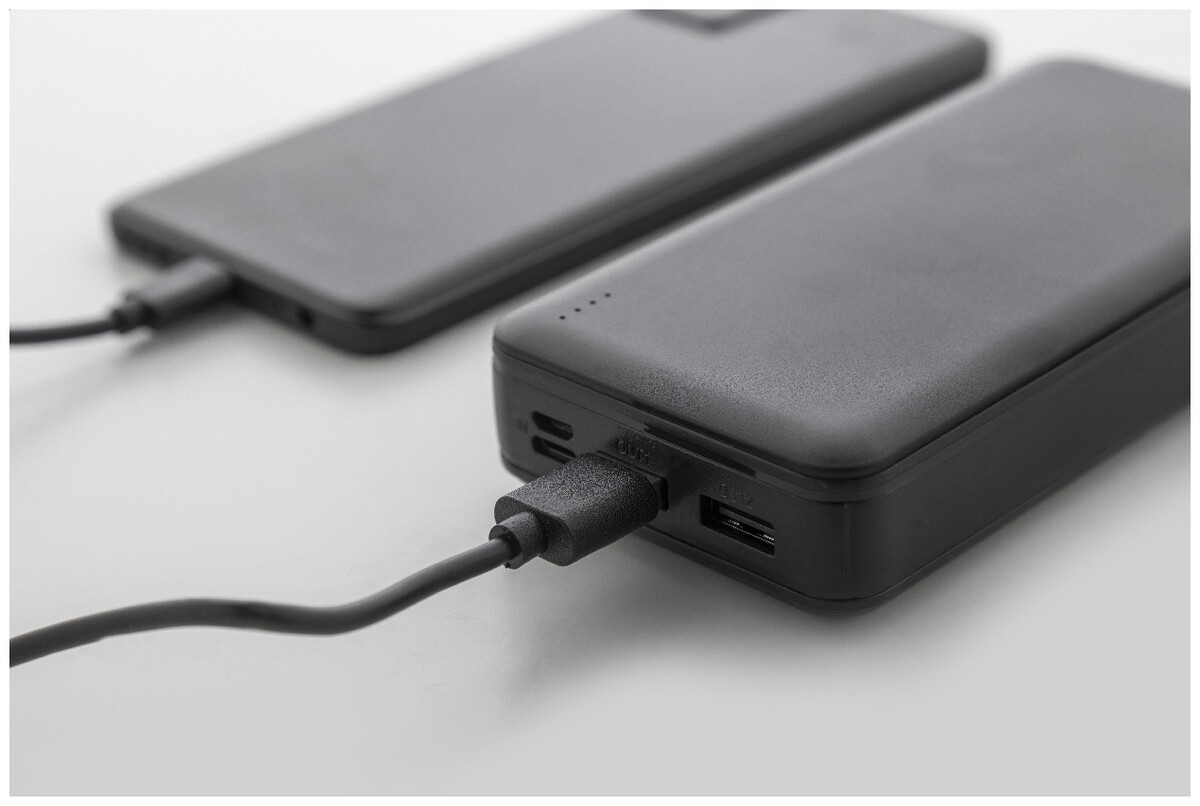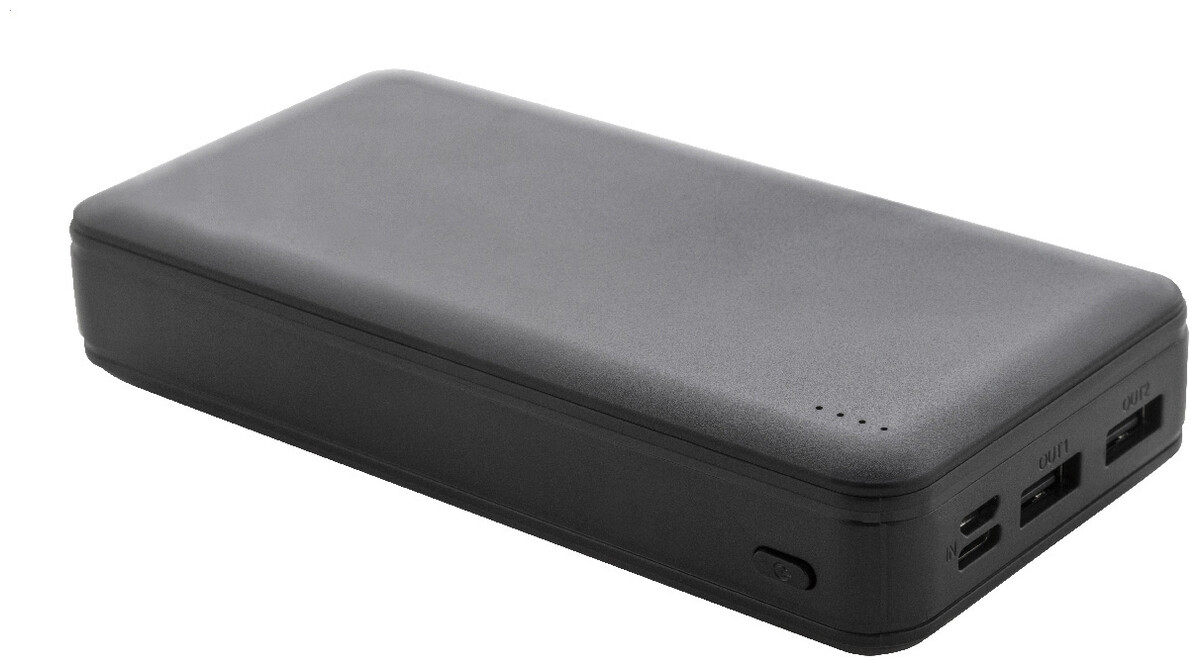 Power banka z recyklovaného ABS plastu s baterií 20 000 mAh. Se 2 USB a 1 nabíjecím portem USB-C. Vstupní porty micro USB a USB-C. Včetně nabíjecího kabelu USB.