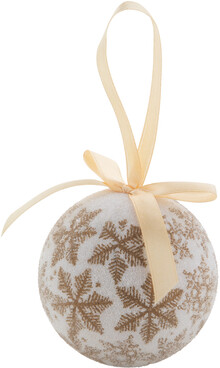 Vánoční ozdoba v perleťovém provedení se stužkou na pověšení. Průměr koule 75 mm. Ve stejně barevné dárkové krabičce.