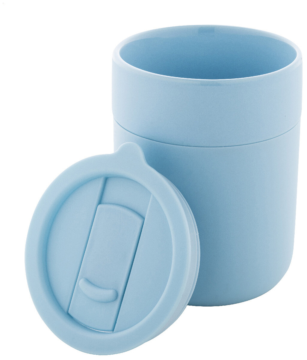 Silikonem potažený keramický cestovní kelímek s PP plastovým odkapávacím víčkem. 300 ml.