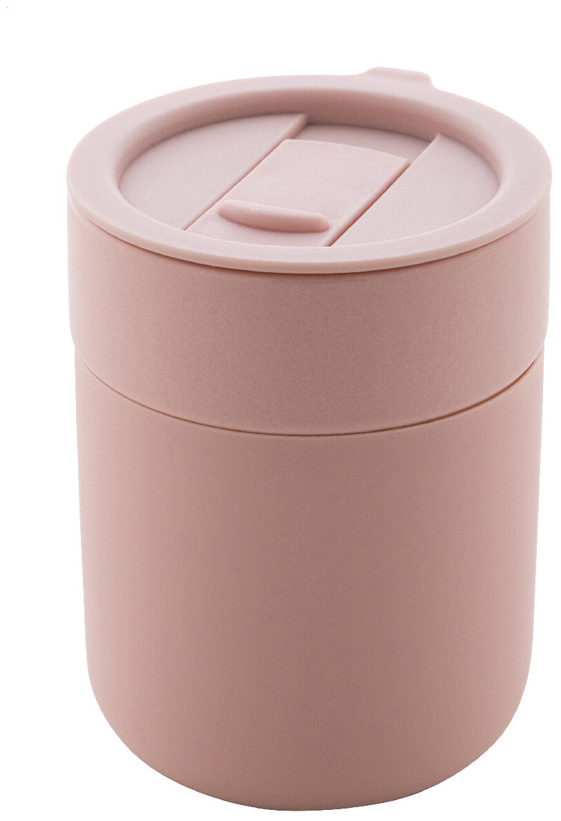 Keramický cestovní kelímek potažený silikonem s víčkem na pití z plastu PP. Objem 300 ml.