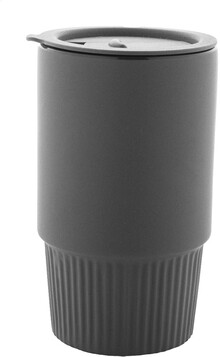 Vysoce kvalitní keramický cestovní hrnek s matným vnějším povrchem a plastovým víčkem z polypropylenu. 420 ml.