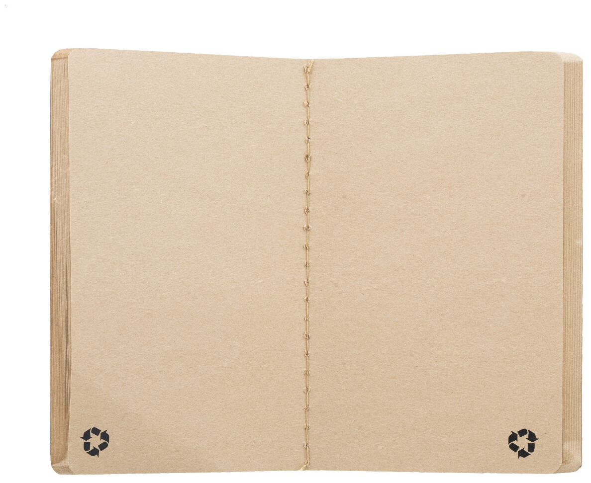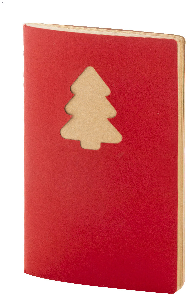 Blok A6 z recyklovaného kraftového papíru s vyřezávaným vánočním stromečkem a 60 prázdnými listy z recyklovaného kraftového papíru.