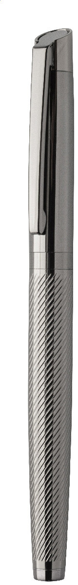 Elegantní sada kovového kuličkového pera a rolleru s diagonálně texturovaným tělem. Ve dvoubarevné dárkové krabičce s modrou náplní. Produkt značky André Philippe.