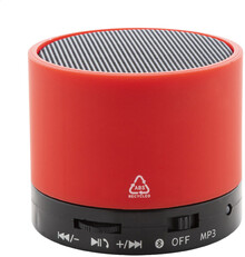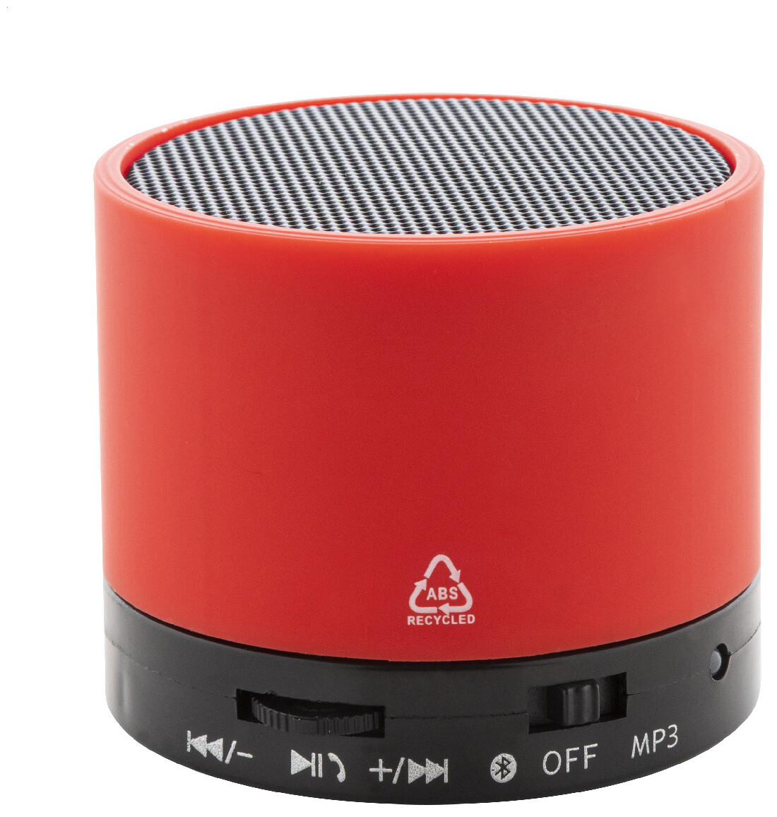 Bezdrátový reproduktor z recyklovaného ABS v pogumovaném pouzdře s kovovou síťovinou a dobíjecí baterií (300 mAh). S funkcí handsfree hovorů a přehrávání MP3 z micro SD karty. Včetně nabíjecího kabelu USB.