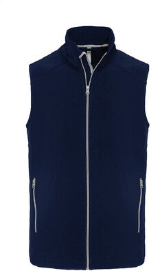 Dvouvrstvá softshellová vesta na zip s bočními kapsami na zip. S kontrastními zipy. Vodoodpudivá tkanina. Vnější strana: 95 % polyester a 5 % elastan. Vnitřní strana: 100% polyester micro polar fleece. 300 g/m2. Výrobek značky Kariban.