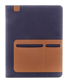 Složka na dokumenty A4 z recyklovaného plátna a recyklované umělé kůže s několika předními a vnitřními kapsami. S blokem na 20 linkovaných listů z recyklovaného papíru. 70 % recyklované bavlny a 30 % RPET polyesteru.