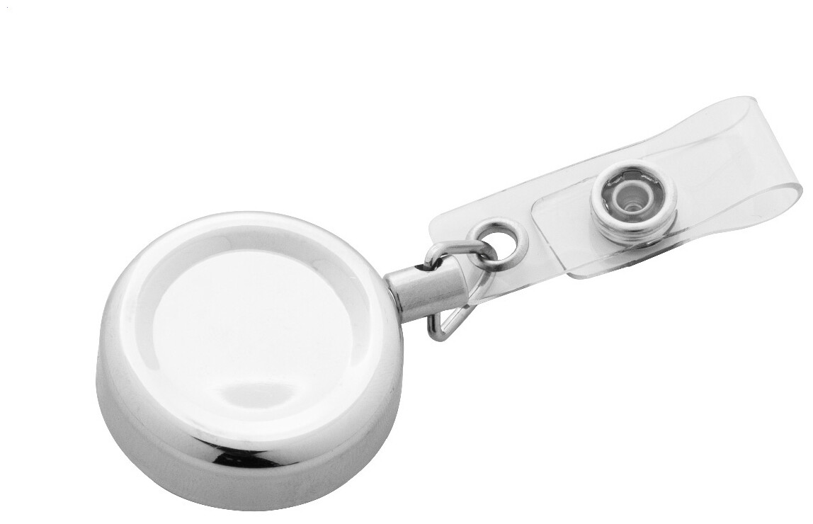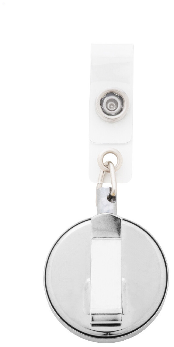 Exkluzivní kovový držák na ski pass s vysoce lesklou metalickou povrchovou úpravou. Zapínání na druk, teleskopická šňůra a kovová spona.