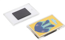 Obdélníkový akrylový magnet na ledničku s plnobarevnou papírovou vložkou na zakázku. Cena zahrnuje digitální tisk, cena nezahrnuje tiskovou přípravu. Min. mn.: 100 ks.