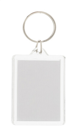 Přívěšek na klíče ve tvaru obdélníku z akrylu s barevnou papírovou vložkou na zakázku a kovovým kroužkem. Cena zahrnuje digitální tisk na obou stranách, nezahrnuje tiskovou přípravu. Min. mn.: 100 ks.