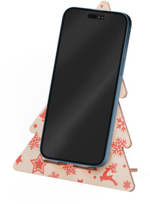 Stojánek na mobil ve tvaru vánočního stromku z březové překližky. Dodáváno rozložené.