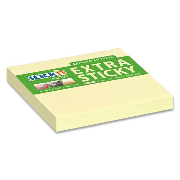 Samolepicí bloček Stick'n by Hopax EXTRA STICKY, 76 x 76 mm, recykl. žlutý, 90 lístků