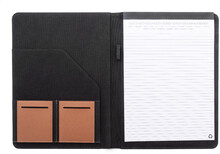 Složka na dokumenty A4 z recyklovaného plátna a recyklované umělé kůže s několika předními a vnitřními kapsami. S blokem na 20 linkovaných listů z recyklovaného papíru. 70 % recyklované bavlny a 30 % RPET polyesteru.
