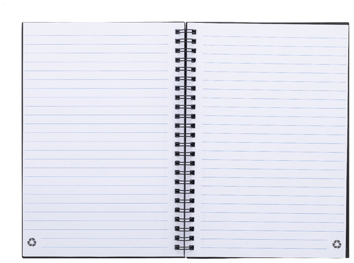 Spirálový blok A5 s 80 linkovanými listy z recyklovaného papíru.