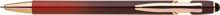 Elegantní kuličkové pero s kovovým tělem v moderním červeno-oranžovém přechodu a detaily z růžového zlata. Na konci má dotykovou část pro ovládání mobilu či tabletu. Výsledný efekt laserového značení je světle stříbrný až bílý. Náplň X-20 modře píšící.