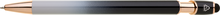 Elegantní kuličkové pero s kovovým tělem v moderním černo-šedivém přechodu a detaily z růžového zlata. Na konci má dotykovou část pro ovládání mobilu či tabletu. Výsledný efekt laserového značení je světle stříbrný až bílý. Náplň X-20 modře píšící.