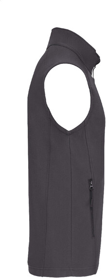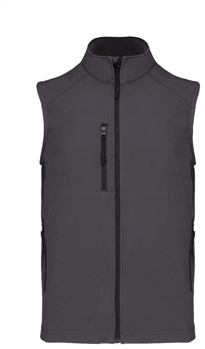 Třívrstvá, prodyšná, větru a voděodolná softshellová vesta na tělo se zipem a náprsními a bočními kapsami na zip. S prodyšnou střední vrstvou a vnitřní vrstvou z micro polar fleecu. Materiál: 95 % polyester a 5 % elastan, 300 g/m2. Výrobek značky Kariban.