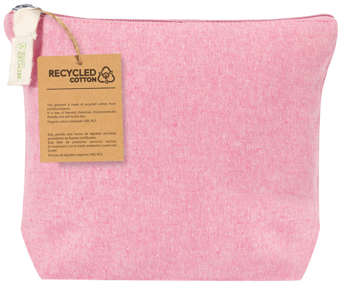 Kosmetická taštička na zip z recyklované bavlny. S výrazným štítkem z recyklované bavlny.