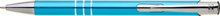 TRIALI hliníková reklamní tužka. Lesklé tyrkysové tělo se třemi stříbrnými proužky a chromovými doplňky.