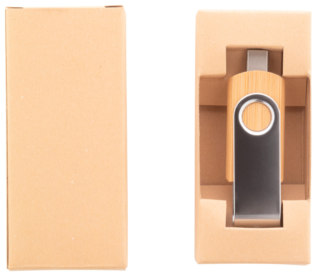 USB flash disk Twist OTG v bambusovém a kovovém pouzdře s pamětí 8/16/32 GB. S připojením USB a USB-C. V kraftové papírové krabici. USB 2.0.