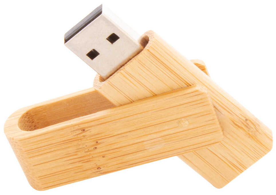 Twist USB flash disk v bambusovém pouzdře s pamětí 8/16/32 GB. V kraftové papírové krabičce. USB 2.0.