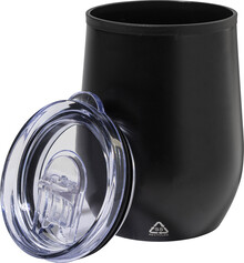 Dvoustěnný termo hrnek z recyklované nerezové oceli s vnitřní stranou z PP a víčkem z PS. 350 ml.