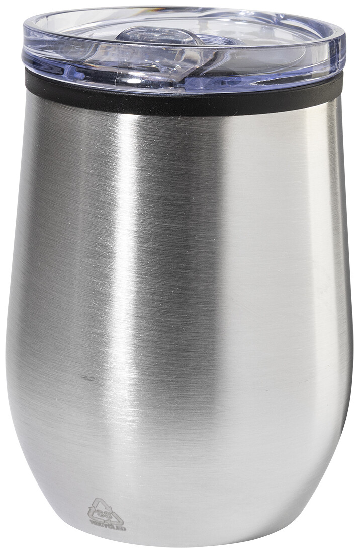 Dvoustěnný termo hrnek z recyklované nerezové oceli s vnitřní stranou z PP a víčkem z PS. 350 ml.