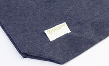Nákupní taška s klínkem a dlouhými uchy ze 70 % recyklované bavlny a 30 % RPET polyesteru, 140 g/m2. S výraznou etiketou o recyklované bavlně.