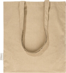 Nákupní taška s dlouhými uchy ze 70 % recyklované bavlny a 30 % RPET polyesteru, 140 g/m2. S výraznou etiketou o recyklované bavlně.