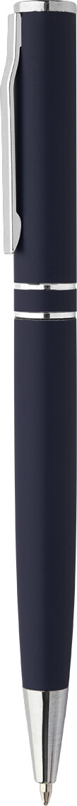 Kuličkové pero z recyklovaného hliníku s chromovanými částmi a kroužky. V černé dárkové krabičce. S modrou náplní.