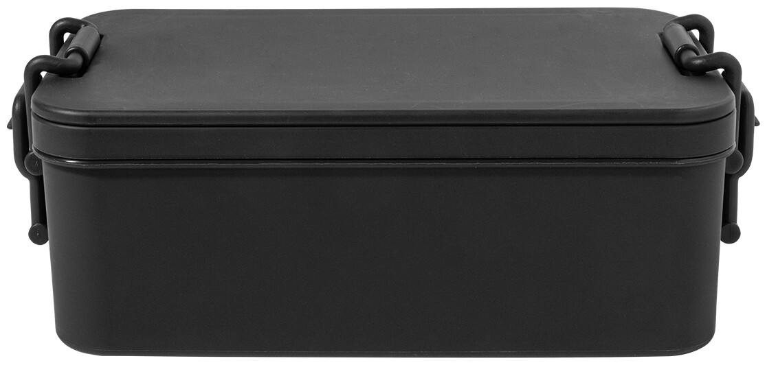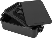 Box na jídlo z PP plastu se sadou příborů (vidlička, lžíce a nůž), zapínáním na přezku a 2 přihrádkami (1000 ml a 800 ml). Stohovatelný design pro kompaktní skladování.