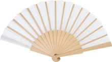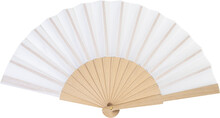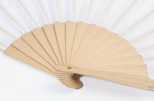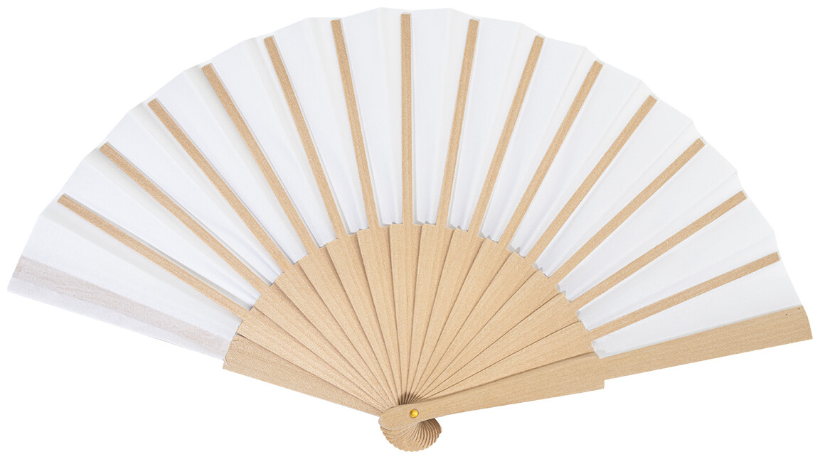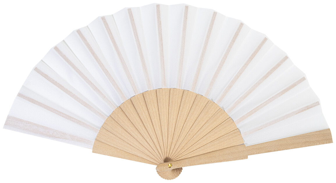 Vějíř z RPET polyesteru s dřevěnými žebry.