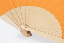 Vějíř z RPET polyesteru s dřevěnými žebry.