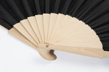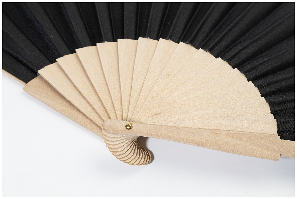 Vějíř z RPET polyesteru s dřevěnými žebry.