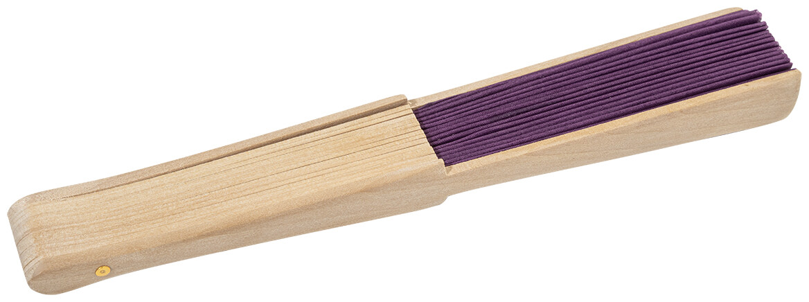Vějíř z RPET polyesteru s dřevěnými žebry.