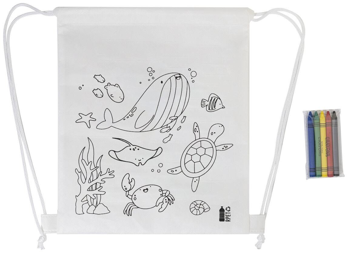 Vak se stahovací šňůrkou pro děti z netkané RPET tkaniny s 5 voskovkami na vybarvení.