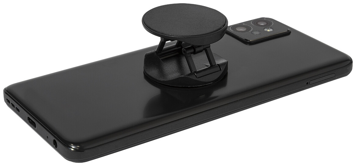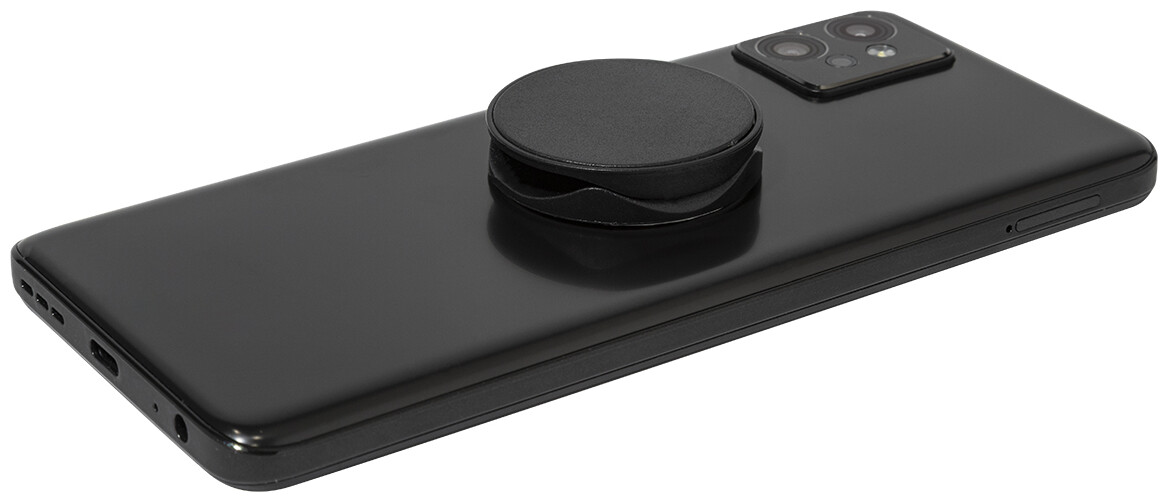 Kulatý držák na mobil z recyklovaného ABS se samolepicí základnou.