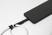 60W RPET kabel s náramkem na mobil CuffCharge, bílá