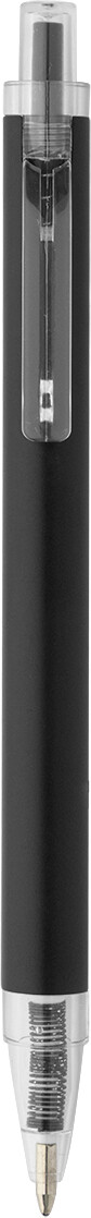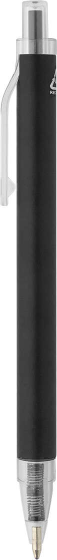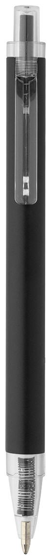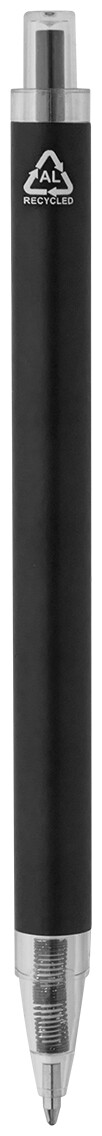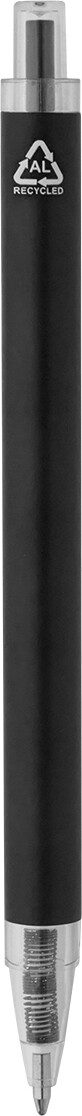 Kuličkové pero z recyklovaného hliníku s matným tělem a průhlednými RPET částmi. S modrou náplní.