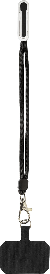 Držák na mobil z RPET s vložkou pro telefon a stojánkem na mobilní telefon z recyklovaného ABS.